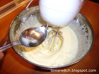 На тънка струйка се прибавят лимонадата и олиото; слага се ванилията.